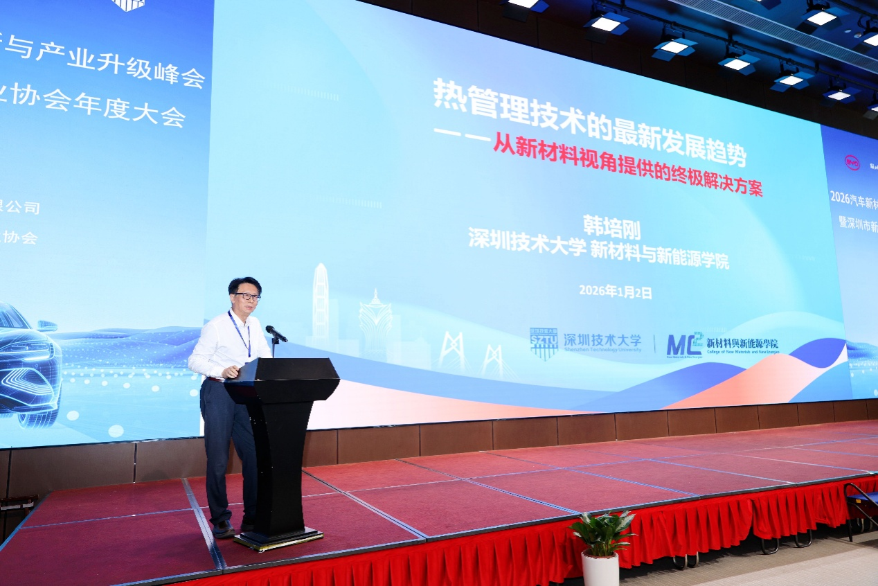 下午,大会主论坛移师深圳技术大学报告厅。韩培刚教授围绕热管理技术发展方向作专题解读。会上,汽车新材料创新发展联盟正式启动,为打通“技术研发—成果转化—产业应用”的创新链条按下加速键。