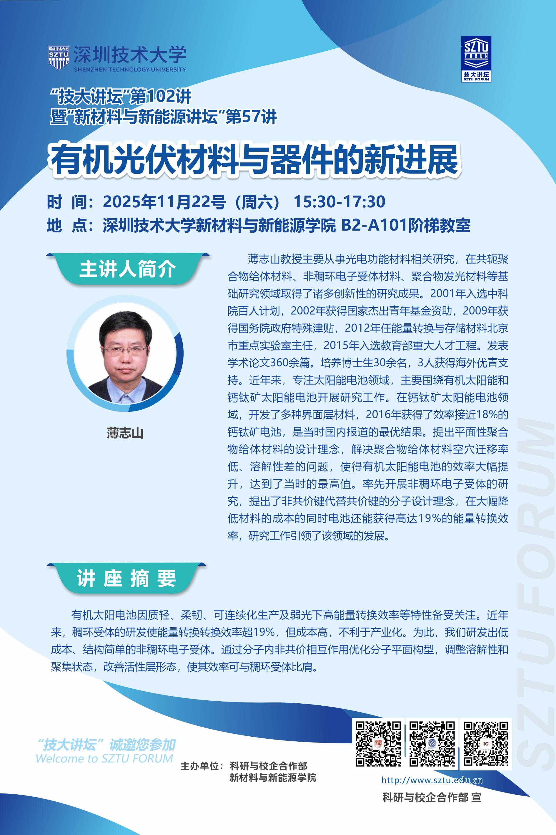 地点:深圳技术大学新材料与新能源学院 B2-A101阶梯教室