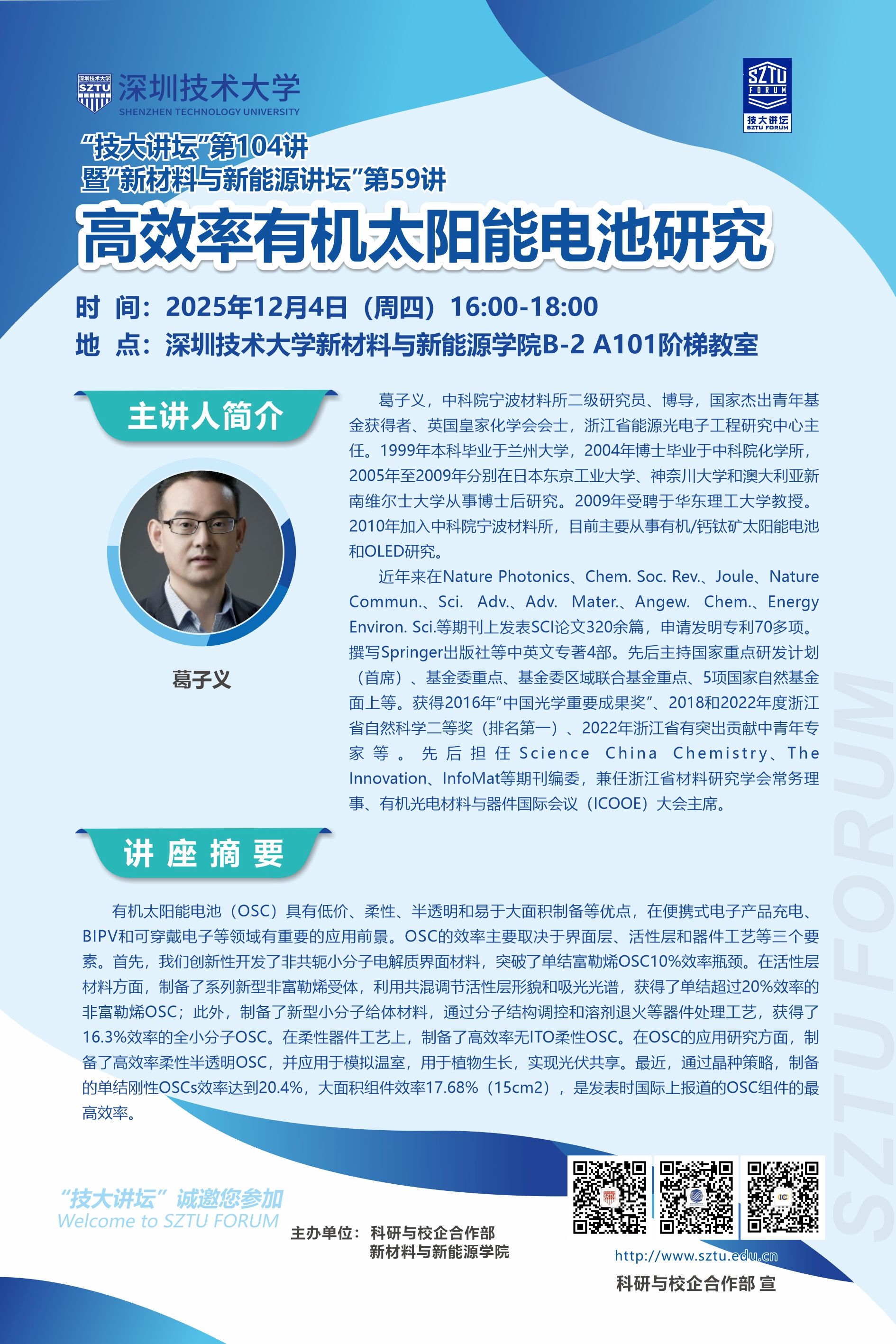地点:深圳技术大学新材料与新能源学院B-2 A101阶梯教室